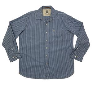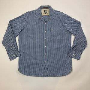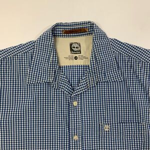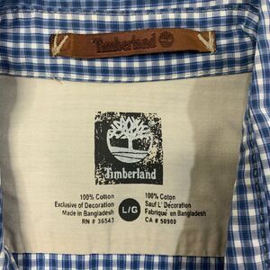 TIMBERLAND SHIRT MENS LARGE BLUE WHITE PLAID BUTTON UP LONG SLEEVE COTTON POCKET
