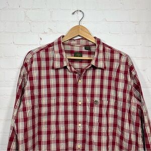 Timberland Shirt Mens XXL Red Plaid Tartan Western Long Sleeve Button Up