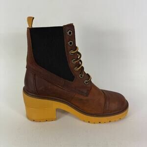 Timberland Silver Blossom Ankle Boot Women's 7.5 Brown Leather Lace-Up A21ZA