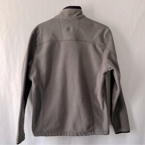 Timberland Size Small Petite Gray & Black Fleece Jacket. Preowned item in good condition. Side pocket, zipper chest pocket, drawstring bottom closure.