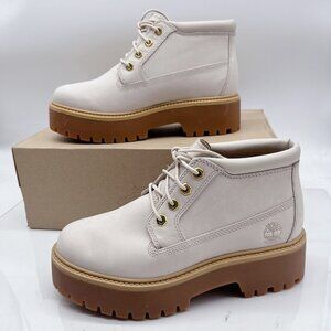 Timberland Stone Street Platform Mid Waterproof Chukka Boots White Nubuck US 7.5