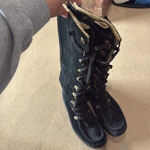 Elevate your style with these chic black lace-up boots. Perfect for any occasion, these boots offer both comfort and fashion.