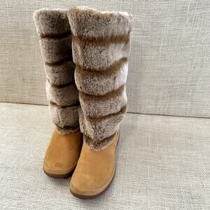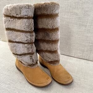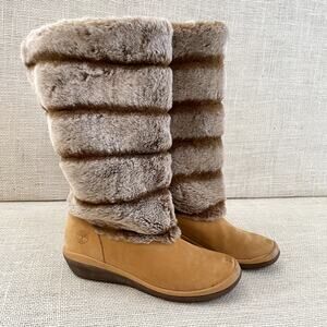 Timberland Suede and Faux Fur Slip On Boots, Warm and Toasty! 14 in. Ladies 8.5