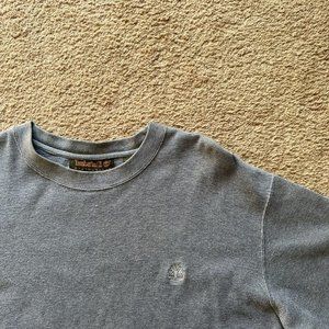 Timberland Sweater Mens Large *Stain* Crewneck Short Sleeve Grey Logo
