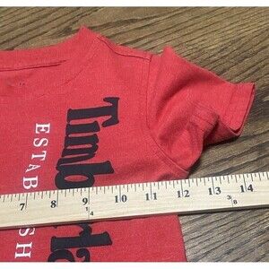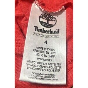 Timberland T- Shirt Boys Size 4 Short Sleeve Red Black Spellout Tee Top