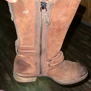 Elegant tan leather boots with a stylish buckle. Perfect for any occasion.