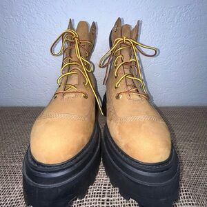 Timberland Tan and Black Lace Up Boots with Chunky Sole Size 7.5 NEW