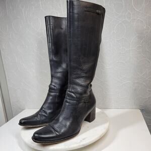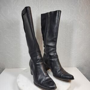 Timberland Tasa Tall Leather Boots 9 Black Knee High Western Block Heel 61383