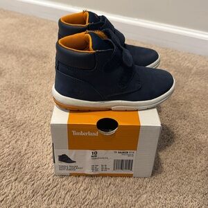Stylish and comfortable, these Timberland kids shoes in navy blue are perfect for everyday adventures. Featuring a secure fit and durable design, they are ideal for active kids. Size 10 M/M Toddler. Box included.
