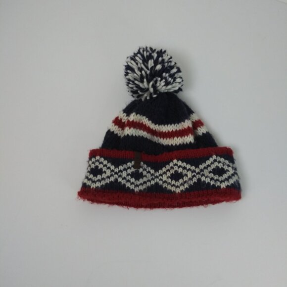 Timberland Unisex Beanie Wool Blend Maroon Blue White With Pom One Size GUC
