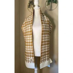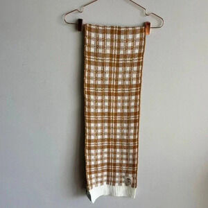 Timberland Unisex Buffalo Plaid Scarf Tan White Size 10"x33"
