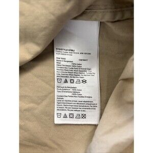 Crafted for both style and function, the Timberland Utility Safari Jacket in a women's medium is a versatile addition to any wardrobe. Its khaki tan cotton outer shell pairs effortlessly with a range of outfits, while the matching 100% cotton lining ensures comfort during wear. The jacket's basic jacket style is enhanced by its practical features, making it a staple for those who appreciate both fashion and utility.