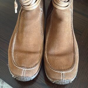 Experience the perfect blend of style and functionality with these Timberland ankle strap moccasin zip boots. Crafted from premium tan suede, they feature a mid-calf height and a comfortable flat rubber sole, making them ideal for everyday wear in colder months.