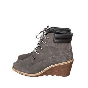 Timberland Wedge Bootie Nubuck Leather Gray Ankle Boots