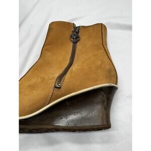 Timberland Wedge Boots Womens Tan Suede Zipper 2.5" Heel Pull On Shoe Sz US 8.5