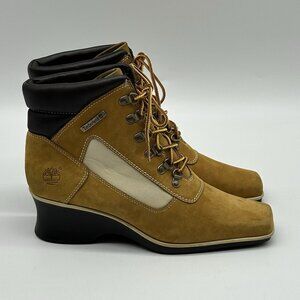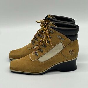 Timberland Wheat Brown Leather Wedge Heel Ankle Booties Boots Women’s Size 8 M