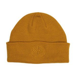 Timberland Wheat Knit Beanie Rib Cuff Embroidered Crest Logo Thermal Winter NWT
