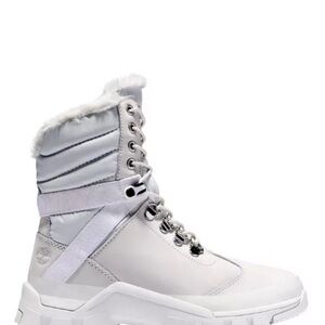 Step into winter with Timberland's White Winter Boots, crafted for both style and durability. These high-top boots feature a cozy white fleece lining and a robust chunky rubber sole, providing warmth and traction in snowy conditions. The sleek monochromatic design and secure lacing system make them an ideal choice for winter adventures.