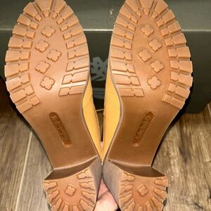 Elegant Timberland boots with brown accents and yellow laces. Ideal for a fashionable statement.