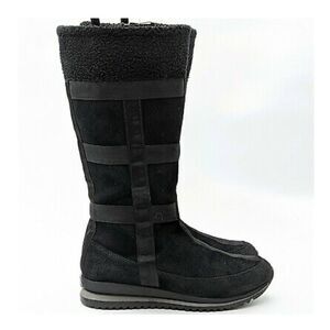 Timberland Women Vintage 90s Y2K Black Genuine Leather Tall Lug sole Boots