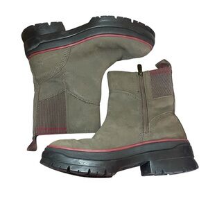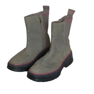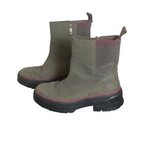 Timberland Womens 6.5 Malynn Side Zip Boots Olive Leather Waterproof Outdoor EUC