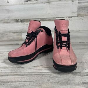 Timberland Women's ACT Pink & Black Leather Chukka Booties Lace Up 6.5M