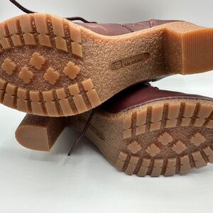 Get your style on with the Women's Allington Burgundy Boot featuring Premium Timberland® leather upper and ReBOTL™ fabric. Help stay in total comfort with OrthoLite® super soft foam insoles and long-term cushioning. The rubber lug outsole makes every step count on any terrain. The padded collar and lace-up style help give you extra comfort. Go ahead—tackle your next big adventure. Timberland supports responsible manufacturing of leather via the Leather Working Group.