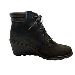 Timberland Women's Amston Boots 8253A Black Wedge Heels Ankle Booties Size 8