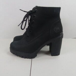 Timberland Women’s Black Heeled Lace-Up Boots | Chunky Heel Combat Style sz7.5