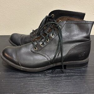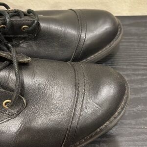Sleek black leather boots with lace-up front. Perfect for versatile style.