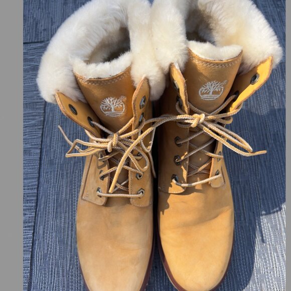 Very gently used and clean Timberland boots for women with fur trim size 9.