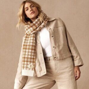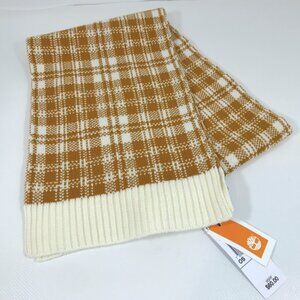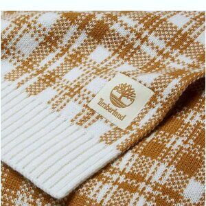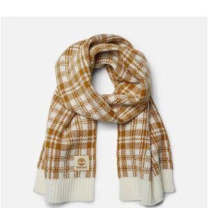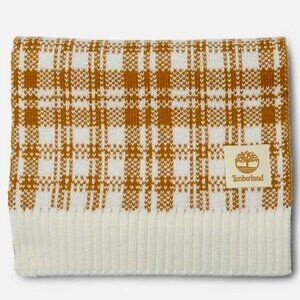 Stay warm in style with this casual and classic plaid knit scarf. Made of 100% soft acrylic with a tonal woven Timberland tree logo label, it will keep you cozy and comfortable for years to come. Brown/tan/white color. 100% Soft Acrylic Knit, Tonal Woven Timberland® Tree Logo Label