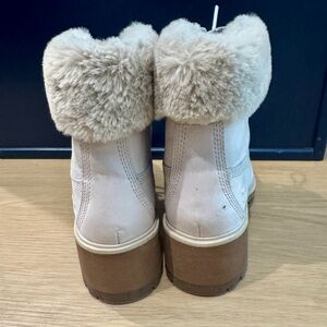 Timberland Women's Cream Fur-Lined Boots with lug sole