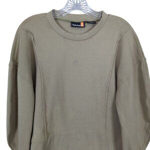 Timberland Women’s Crop Sweatshirt Sz M Khaki Pullover Crewneck Cotton Logo