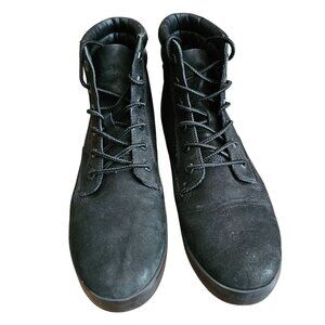 Tags: Women's sneakers, black leather shoes, Timberland shoes, high-top women's sneakers, lace-up women's boots, casual footwear, durable sneakers, padded collar shoes, size 10 Timberland, women's casual shoes, leather high-tops, black Timberland boots, versatile women's sneakers