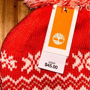 Timberland Women's Fairisle Pom Knit Beanie. One Size. Orange Cream. NWTS!