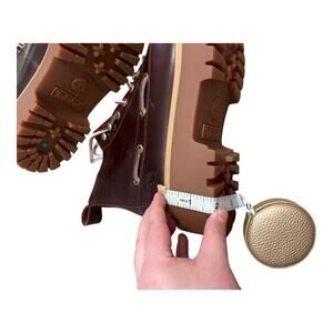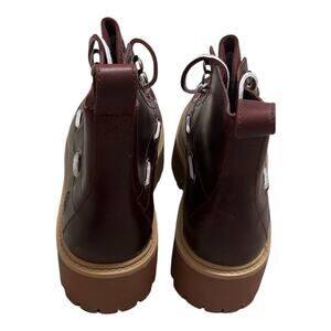 Stylish lace-up boots by Timberland. Rich burgundy leather. Durable tan sole. Perfect for any adventure.