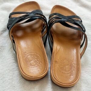 Timberland Women’s Leather Strappy Sandals Slip On Black Tan 7M Comfort Non Slip