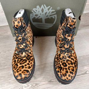 Timberland Women's London Square Lace-Up LEOPARD CHEETAH Winter Boots