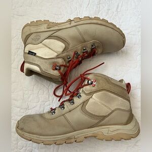 Timberland Women’s Mt Maddsen Waterproof Hiking Boots in Tan with Red Laces