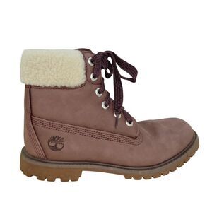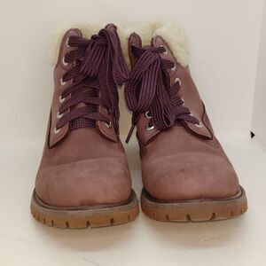 Timberland Womens Pre-owned Grape Leather Fur Lined Winter Boots - sz. 8 1/2