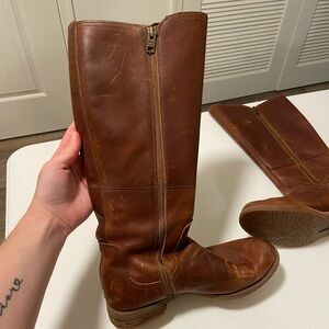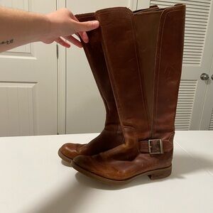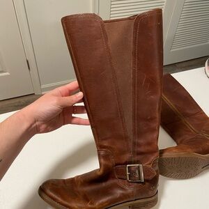 Women’s Timberland riding boots. Boots are made of leather, zip closed & have a decorative buckle. Boots are in fair condition, having many markings as shown in images. Size 6.5 women’s. Smoke free home!