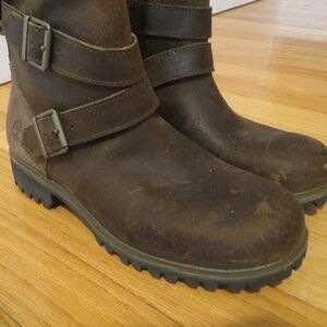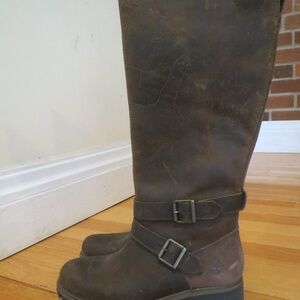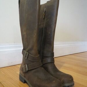 Timberland Women's Tall Suede Dark Brown Leather Buckle Zip Up Boots Size 7