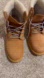 Stylish Timberland boots. Tan leather with gray laces. Cozy interior lining. Wore once for like 2 hours. Great condition