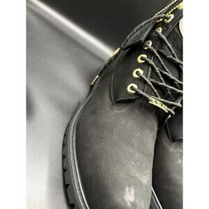 The Timberland X Champion 6” Shearling Black Size 11 boots are a stylish and versatile collaboration between Timberland and Champion. These lace-up boots feature a round toe shape, ankle height, and waterproof construction, making them suitable for various occasions including travel, activewear, formal events, and casual wear. The black nubuck leather upper with faux fur lining and embroidered accents adds a touch of luxury to these durable boots, perfect for all seasons. With a rubber outsole, these boots combine both style and functionality for the modern man.