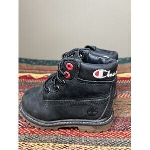 Timberland X Champion Black Suede Lace Up Ankle Boot Kids Size 5