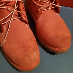 all red, waterproof, boots are in good condition could use a professional cleaning, have a few imperfections as seeing in pictures but nothing major, still has lots of life in them, heavy duty material, perfect for winter, snow, outdoors activities, etc, etc