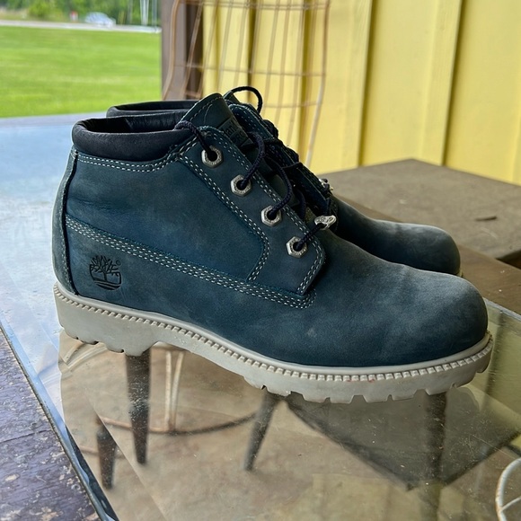 Slate blue timberland boot. Size is a men’s 8 but will fit a women’s 9.5-10. Great condition rarely worn. Low top, lace ups.