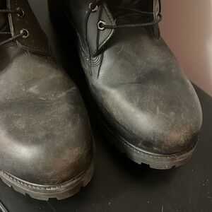 These boots are in great preowned condition. The pictures do not give them justice. The color is a very deep, dark, brown, almost black