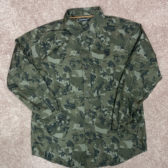 Vguc pfsf no stains tears or holes cotton button down camouflage boys timberland medium 10/12
